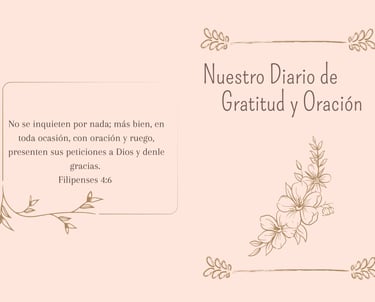 Una relación personal próspera con Dios comienza con gratitud. ¿Qué mejor manera de unirnos en familia todas las noches antes de dormir o temprano en la mañana? Cada miembro de la familia puede compartir una cosa por la que están agradecidos. A continuación, cada persona puede compartir una cosa por la que le gustaría orar. Por último, una persona puede compartir un versículo bilblico que ha estado en su corazón.Todos estamos ocupados. Pero este sencillo diario ayudará a su familia a crear un hábito de gratitud.